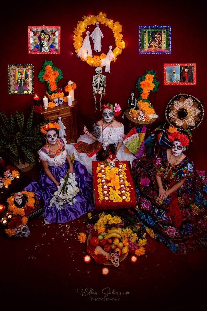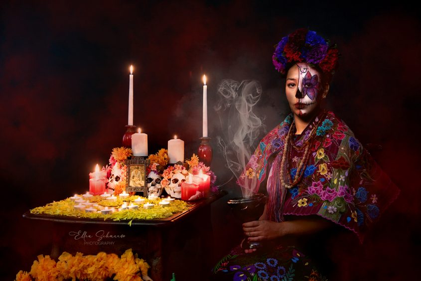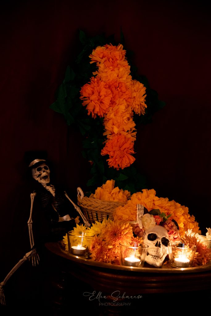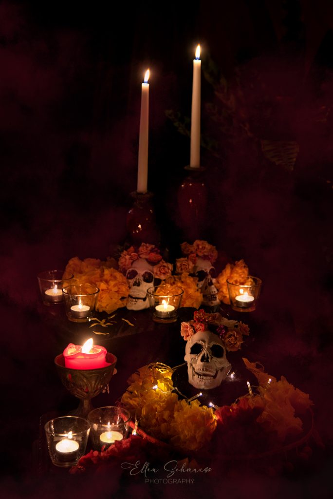 Wir stellen Bilder unserer Lieben und ihrer Lieblingssachen auf den Altar, ehren sie, feiern das Leben, das sie geführt haben, und rufen sie zu uns zurück.