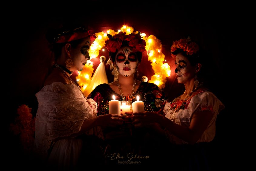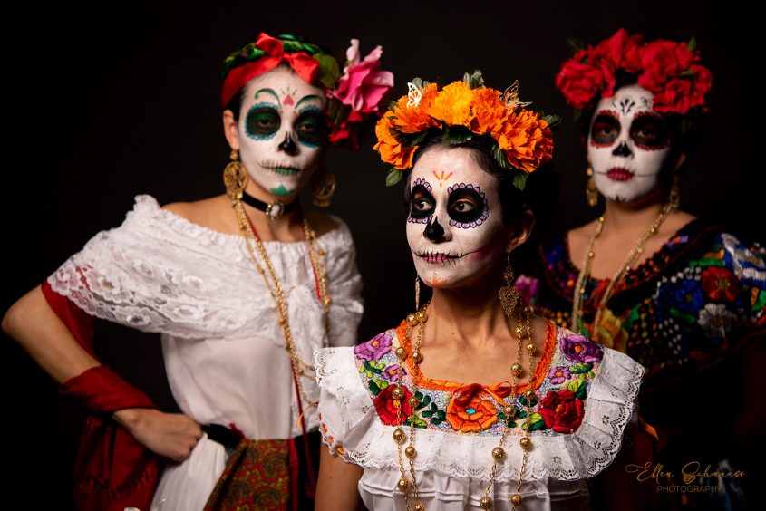 Als die katholischen Spanier die Azteken eroberten, verbanden sie indigene spirituelle Überzeugungen mit katholischen Beobachtungen. Anstelle eines einmonatigen Festivals im August feiern wir jetzt am 1. und 2. November den katholischen “Allerheiligen” und “Allerseelen”.