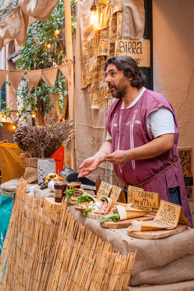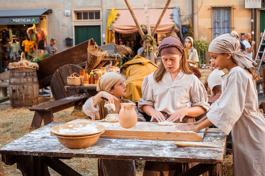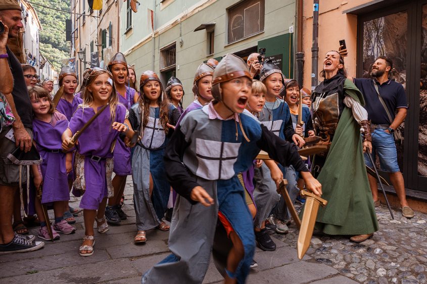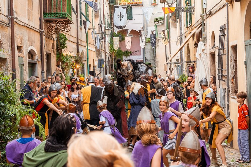 In den verwinkelten Gassen von Finalborgo, erhebt sich jedes Jahr das Mittelalterfest “Viaggio nel Medioevo”wie eine lebendige Erinnerung an vergangene Zeiten. Hinter mächtigen Mauern und unter den Bögen der Stadttore entfaltet sich ein Zauber aus flackernden Fackeln, bunten Bannern und dem Klang alter Melodien. Ritter in glänzenden Rüstungen schreiten durch das Pflaster, während Gaukler, Musiker und Handwerksleute ihre Künste darbieten. Der Duft von gebratenen Speisen und würzigem Wein liegt schwer in der warmen Nachtluft, und wer hier verweilt, fühlt sich, als sei er Teil eines großen, zeitlosen Spiels. Finalborgo verwandelt sich in diesen Tagen in eine Bühne, auf der Geschichte und Fantasie Hand in Hand gehen – ein Fest, das Herz und Sinne gleichermaßen betört.